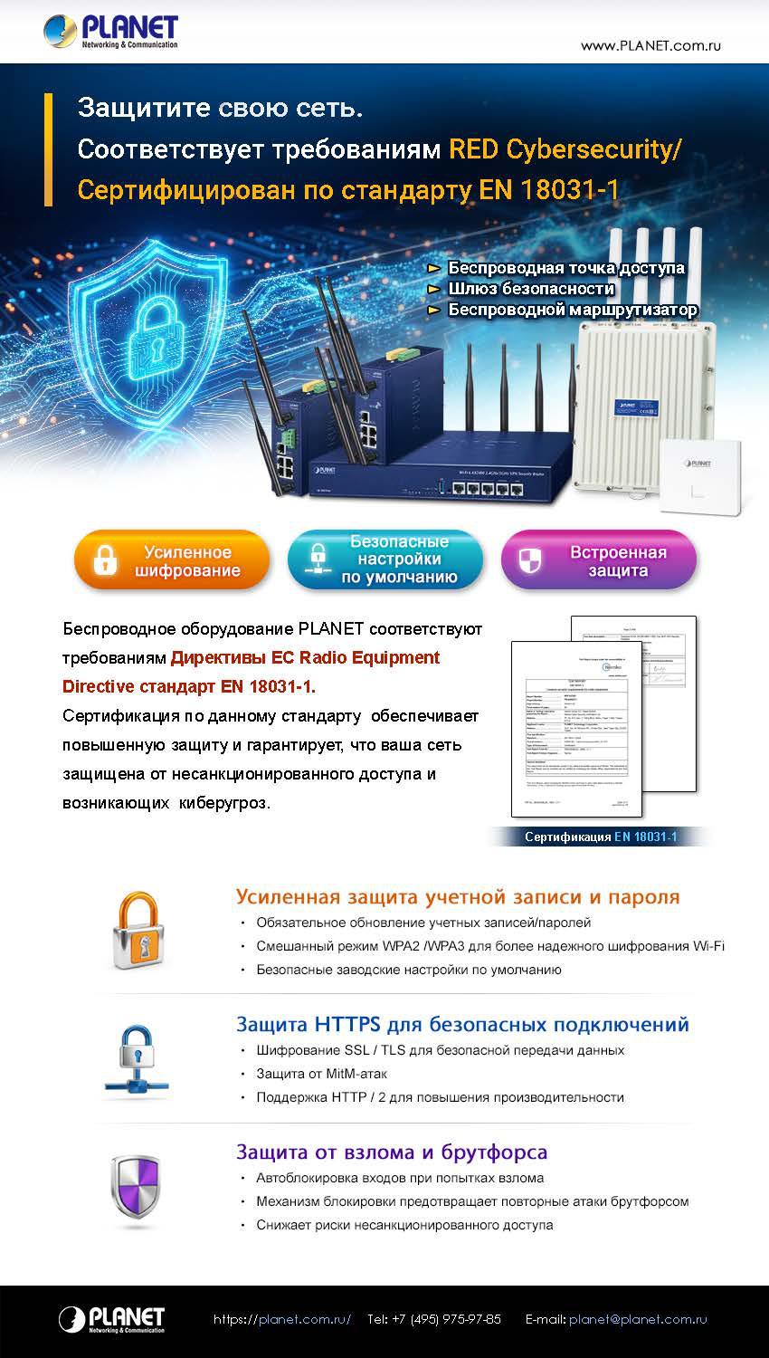 Сертификация по стандарту EN 18031-1 Беспроводное оборудование PLANET соответствует требованиям Директивы ЕС Radio Equipment Directive стандарт EN 18031-1