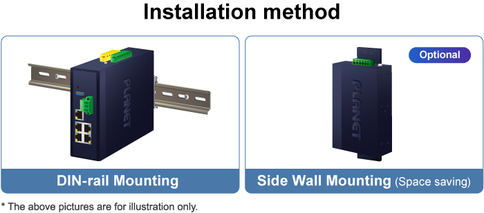 | Installation | DIN-rail kit (Side wall mount is an optional accessory) | ||||||||||||||||||||