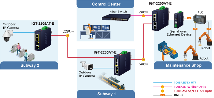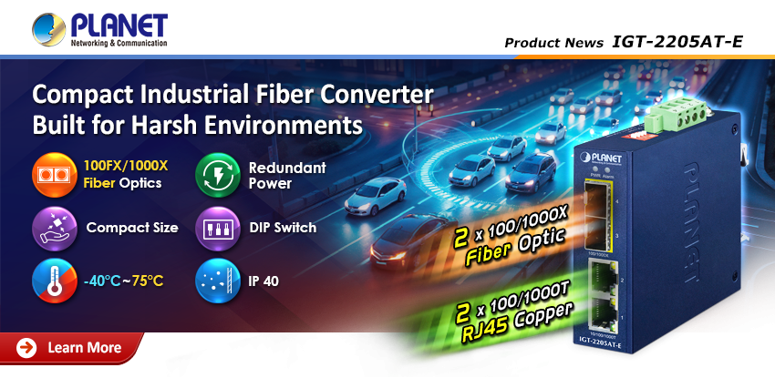 Промышленный гигабитный медиаконвертер PLANET IGT-2205AT-E обеспечивает гигабитную скорость передачи данных по всем портам. Он спроектирован с учетом высокой надежности и безопасности для обеспечения непрерывной работы в суровых условиях, таких как шкафы управления транспортировкой, производственные цеха, наружные установки и помещения с экстремальными температурами. Кроме того, IGT-2205AT-E совместим с приемопередатчиками SFP 100/1000 Мбит/с, что обеспечивает стабильное подключение на большие расстояния и гибкое развертывание промышленных сетей.