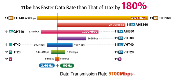 Standard | 5GHz: IEEE 802.11be IEEE 802.11ax IEEE 802.11ac IEEE 802.11n IEEE 802.11a 2.4GHz: IEEE 802.11be IEEE 802.11ax IEEE 802.11n IEEE 802.11b IEEE 802.11g IEEE 802.3 10BASE-T IEEE 802.3u 100BASE-TX IEEE 802.3ab 1000BASE-T IEEE 802.3bz 2500BASE-T IEEE 802.3x flow control IEEE 802.11k, 802.11v, and 802.11r IEEE 802.11i |